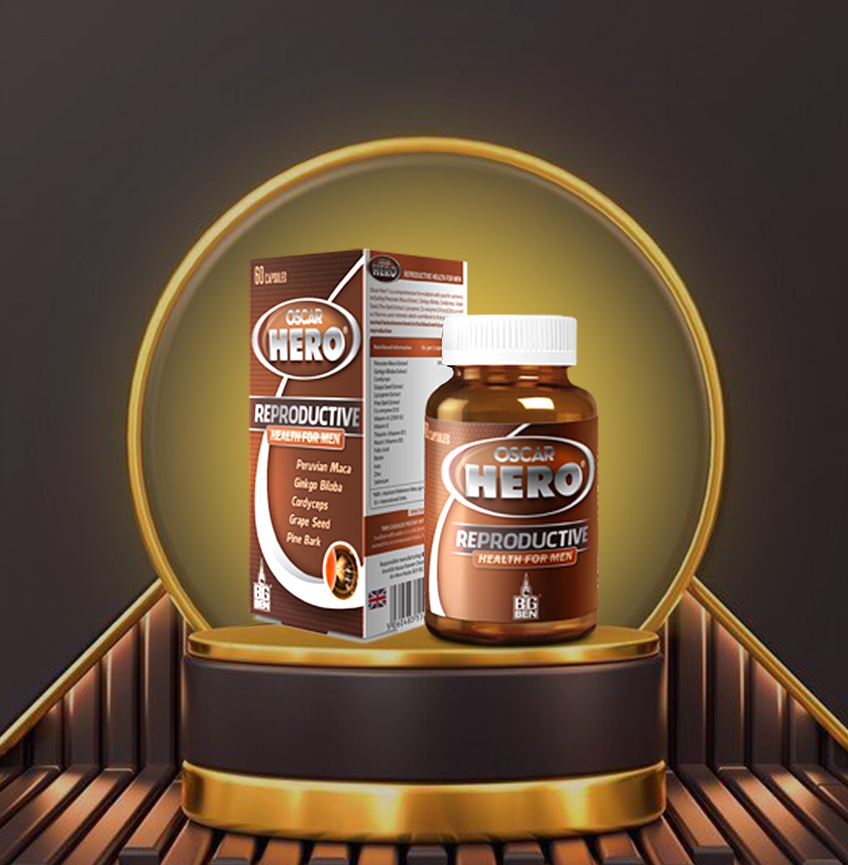 Oscar Hero® is a comprehensive formulation with specific nutrients, including Peruvian Maca Extract, Cordyceps, Grape Seed, Pine Bark Extract, Lycopene, Co-enzyme Q10 and Zinc as well as Vitamins and minerals which contribute to the maintenance of normal testosterone levels in the blood and normal fertility and reproduction.